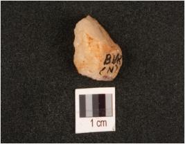 | Description / विवरण | A quartz flake with flake scars on surface. |