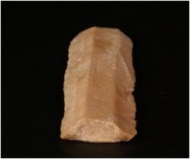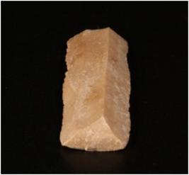 | Description / विवरण | Chert blade with two ridges on the dorsal side, use-ware marks along the cutting edges and trapezoidal in section. |