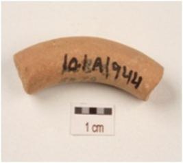 | Description / विवरण | Fragment of handmade terracotta bangle & circular in section, rough surface, fine fabric red in colour. |