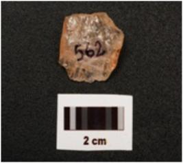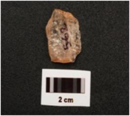 | Description / विवरण | Side scraper made on quartz with chipped off working edge,striking platform bulb on ventral striking platform. |