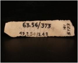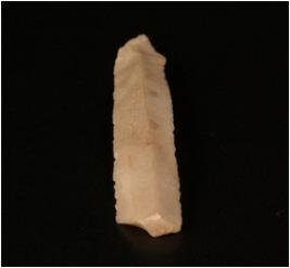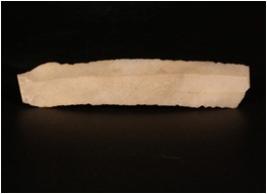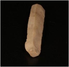 | Description / विवरण | Parallel sided chert blade with a prominent mid ridge on the dorsal side, prominent bulb on ventral side and use ware marks along the cutting edges. |