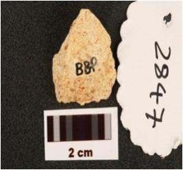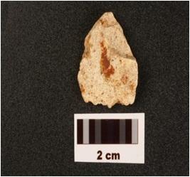 | Description / विवरण | Flake made on chert with use-wear marks along cutting edges, prepared platform with prominent bulb on ventral side and flake scars on dorsal side. |