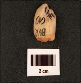 | Description / विवरण | A quartz flake with two flake scars on one side, cortex also visible. |