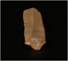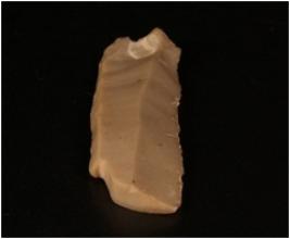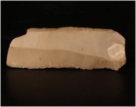 | Description / विवरण | Chert blade with one prominent ridge on the dosal side, diffused bulb on the ventral side and use wear marks along the cutting edges. |