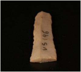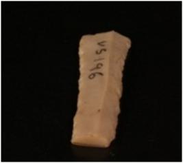 | Description / विवरण | Chert blade with one mid ridge on the dorsal side, bulb on the ventral side, use-wear marks along the cutting edges and trapezoidal in section. |