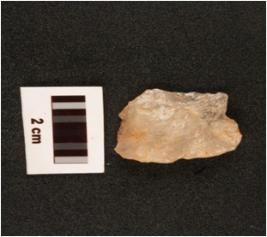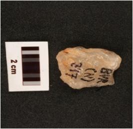 | Description / विवरण | A quartz side scraper, three flake scars on dorsal surface, use wear marks on cutting edges, positive bulb on ventral side. |