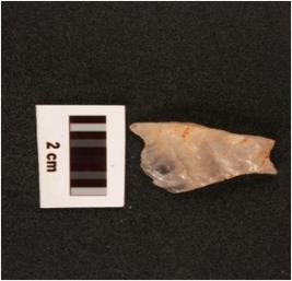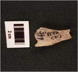 | Description / विवरण | A quartz end scraper made on side struck flake, two blade scars on dorsal side, use wear marks on cutting edges. |