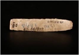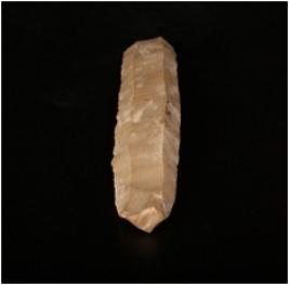 | Description / विवरण | Long parallel sided chert blade with two ridges on the dorsal side, diffused bulb on the ventral side, use-wear marks along the cutting edges and trapezoidal in section. |