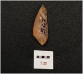 | Description / विवरण | Side scraper made on quartz with sharp working edge,striking platform and flake scars on surface. |