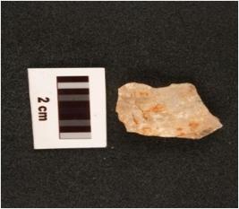 | Description / विवरण | A quartz core with two blade scars, flake scars on one surface. |