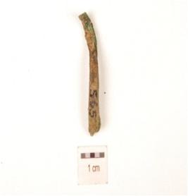 | Description / विवरण | Side scraper made on quartz with chipped off working edge striking platform and flake scars visible on surface. |