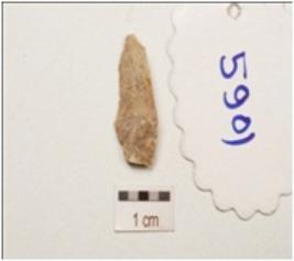 | Description / विवरण | Parallel sided blade made on chert, end struck flake unprepred platform bulb absent use wear marks on cutting edges ridge on surface blade scars on one surface triangular in section, |