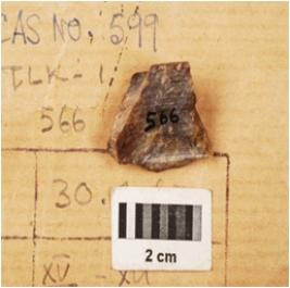| Description / विवरण | Side scraper made on chert with sharp working edge, striking platform and flake scars on surface. |
