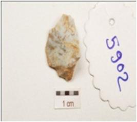| Description / विवरण | Flake made on chert, flake scars on surface, cortex on one side. |