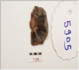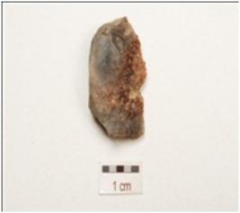 | Description / विवरण | Flake made on chert, end struck flake, prepared striking platform on proximal end, prominent bulb on ventral surface, use wear marks on cutting edge, flake scars on surface, triangular in section, |