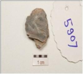 | Description / विवरण | End scraper made on chert, end struck flake, bulb absent, bulb absent, flat broad one end intact round other end blunted cutting edge retouched on cutting edge, flake scars on both surface plano convex in section, |