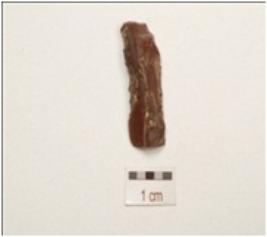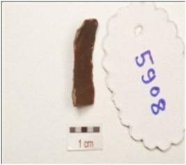 | Description / विवरण | Flake made on chert, end struck flake bulb absent, broken one end, use wear marks on cutting edge, flake scars on one surface, triangular in section, |