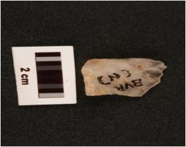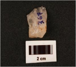 | Description / विवरण | Quartz scraper, slightly broken, working edge, diffused positive bulb on surface. |