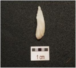 | Description / विवरण | Point made on chalcedony, end struck flake, bulb on absent, intact both ends, round one end pointed other end, flake scars on one surface, triangular in section |