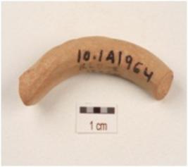 | Description / विवरण | Fragment of handmade terracotta bangle, dull-red in colour, circular in section, fine fabric,rough surface. |