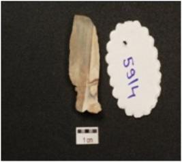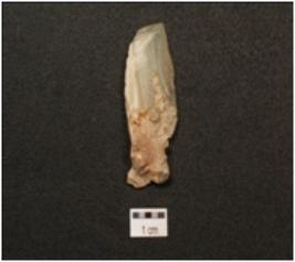 | Description / विवरण | Parallel sided blade made on chert end struck flake, prepared striking platfrom, diffused bulb on ventral surface, sharp cutting edges, use wear marks on cutting edges, cortex on dorsal surface, blade scars on one surface, triangular in section, |