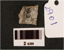 | Description / विवरण | Fragment of parallel sided mesolithic tanged blade with blunt edges, tanged proximal end, distal end brokenn, flake scars on dorsal surface. |