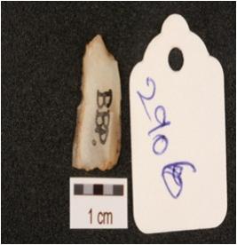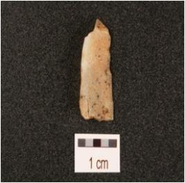 | Description / विवरण | A parallel sided mesolithic quartz blade with blunted right side, left side shows irregular retouches, broken distal end, diffused bulb on ventral surface, a mid ridge on dorsal surface. |