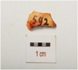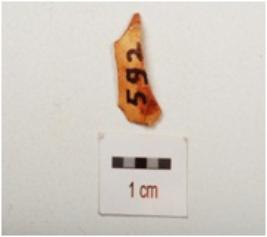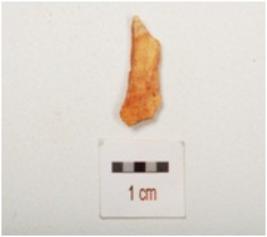 | Description / विवरण | Flake of chert stone with flake scars on surface and broken both side. |