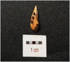 | Description / विवरण | Flake of chert stone with flake scars on surface, |