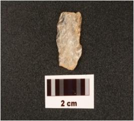 | Description / विवरण | A parallel sided mesolithic blade with use-marks on cutting edges, distal end broken, a prominent ridge on dorsal surface, positive bulb on ventral surface. |