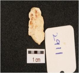 | Description / विवरण | A parallel sided mesolithic chert blade with use-wear marks on edges, a mid-ridge on dorsal surface positive bulb on ventral surface, broken from one end. |