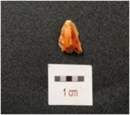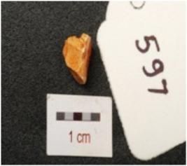 | Description / विवरण | Flake of chert stone with flake scars on surface. |