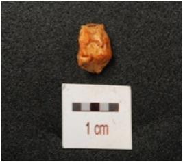 | Description / विवरण | Flake of chert stone with chipped off surface. |