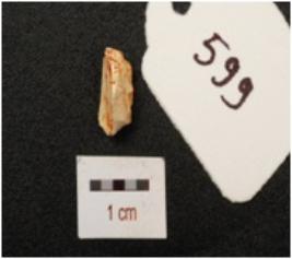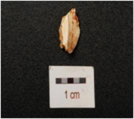 | Description / विवरण | Flake of chert stone with flake scars on surface. |