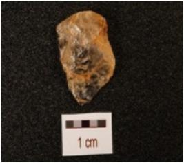 | Description / विवरण | A utilized flake, made on quartz with flake scars on dorsal side, and use wear marks on edge. |