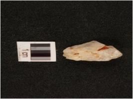 | Description / विवरण | Quartz flake, irregular shape, four edge visible on surface. |