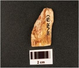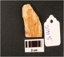| Description / विवरण | A flake made on foosil wood, prepared platform, uneven surface. |