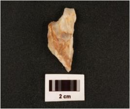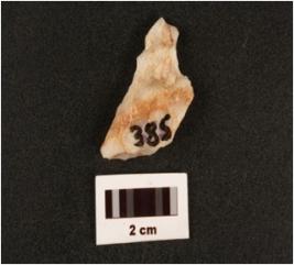 | Description / विवरण | Quartz core, two flake marks on surface. |