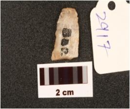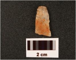 | Description / विवरण | A parallel sided mesolithic quartz blade with use-wear marks on cutting edges, two-ridges on dorsal surface, prominent bulb on ventral side, trapezoidal in section, broken distal end. |