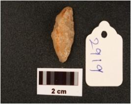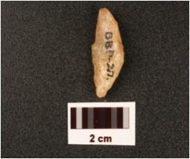 | Description / विवरण | A blunt blade made on quartz with use wear marks on edge. |