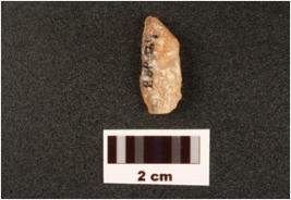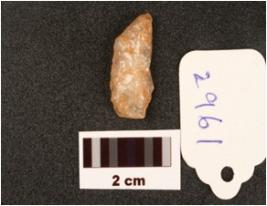 | Description / विवरण | A parallel sided mesolithic quartz backed blade with use wear marks on cutting edges, distal end broken diffused bulb on ventral surface, flake scars on dorsal surface. |