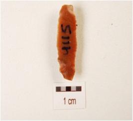 | Description / विवरण | A blade, made on chert with prominent mid-ridge on dorsal side, prepared platform, bulb on ventral, use-wear marks on cutting edge and triangular in section. |