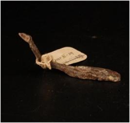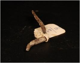 | Description / विवरण | Iron nail with one end flat and other end pointed it is curved and bent from one end. |