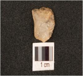 | Description / विवरण | A quartz scraper made on end struck flake, use wear marks on cutting edges, prominent bulb on ventral surface, flake scars on dorsal surface. |