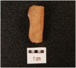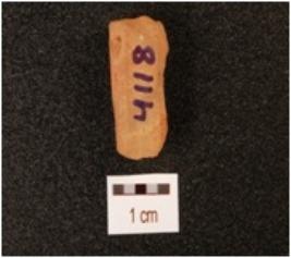 | Description / विवरण | A core, made on chalcedony with five blade scars on surface, pentagonal in section and partly chipped off on surface. |