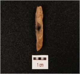 | Description / विवरण | A core, made on chalcedony with six blade scars on surface and smooth surface, hezagonal in section. |