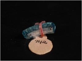 | Description / विवरण | A quartz flake with flake scars and blunt edges. |