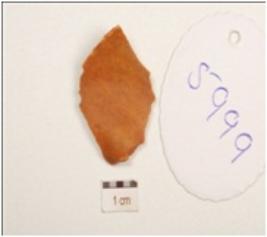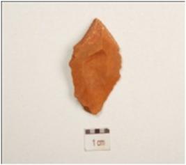 | Description / विवरण | Flake made on end struck chert, prominent bulb on the ventral side, prepared platform on proximal end, pointed distal, end use wear marks along the cutting. |