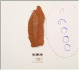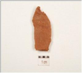 | Description / विवरण | Flake made on end struck chert, flake scars on the dorsal side, flat ventral side, use wear marks along the cutting edges, slightly broken. |