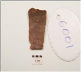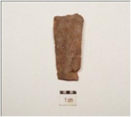 | Description / विवरण | Blade made on chert, ridge on dorsal surface, use wear marks along one ventral side. |